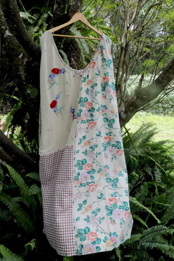 Made from treasured heirloom cottons given new life through patchwork love. The Hideaway Dress has an adjustable drawstring neckline making it suitable for a range of sizes, pockets and side splits. She is perfect worn as is or belted with your favourite accessories.