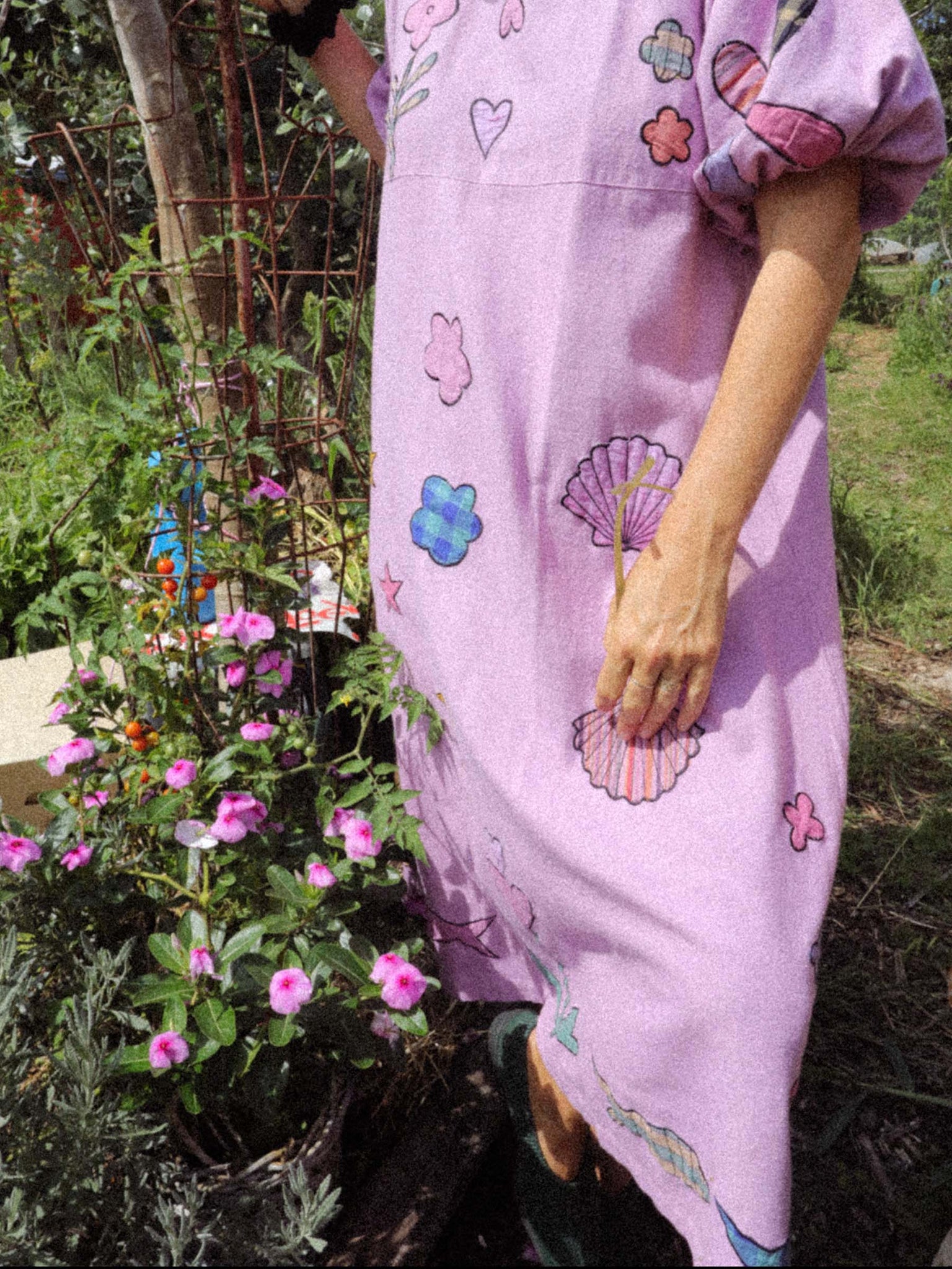 Sea Glass is an appliqué work of art. The dreamiest, mid-weight Indian cotton with underwater appliqués, all overdyed in orchid-fairy-floss pinky lilac.