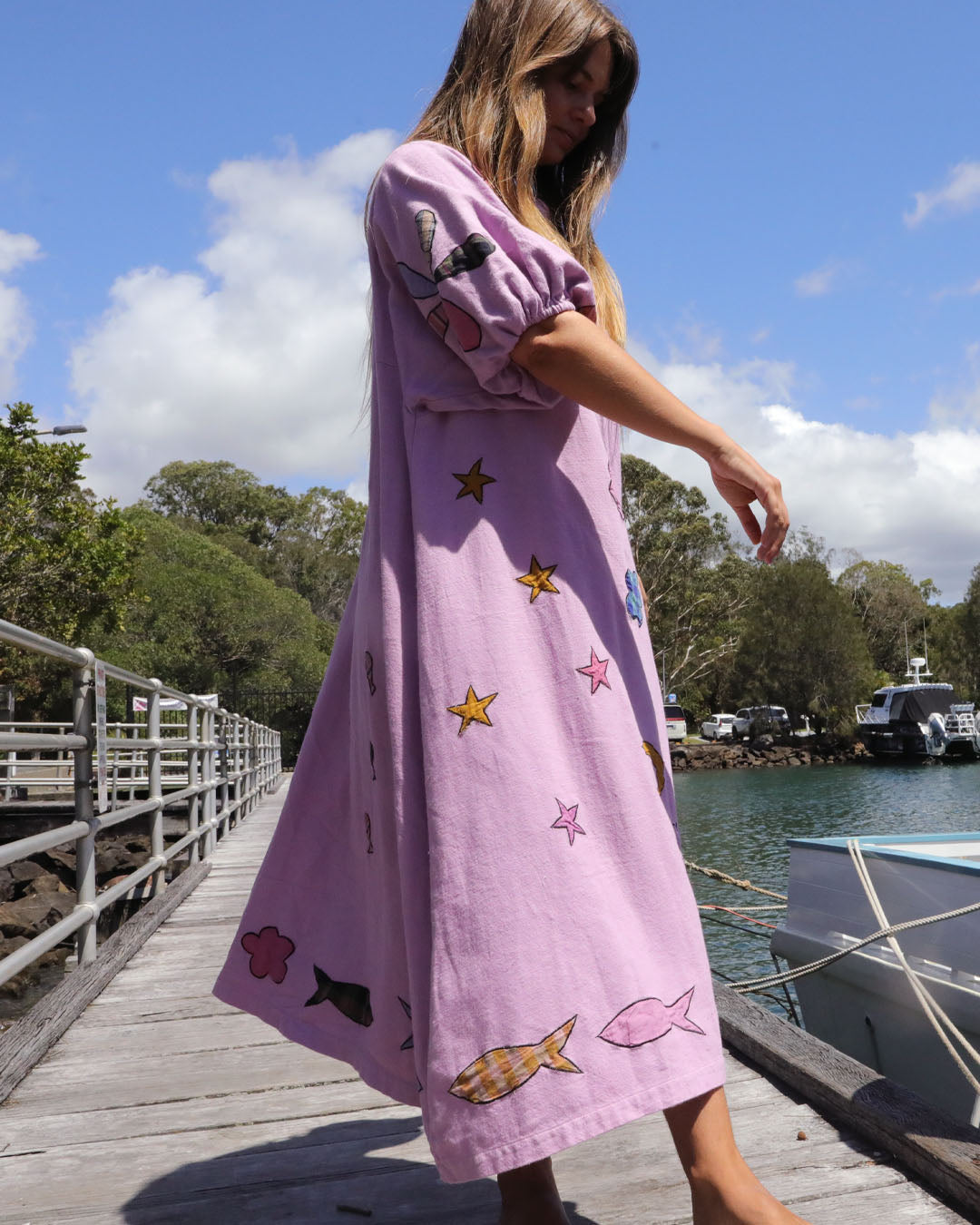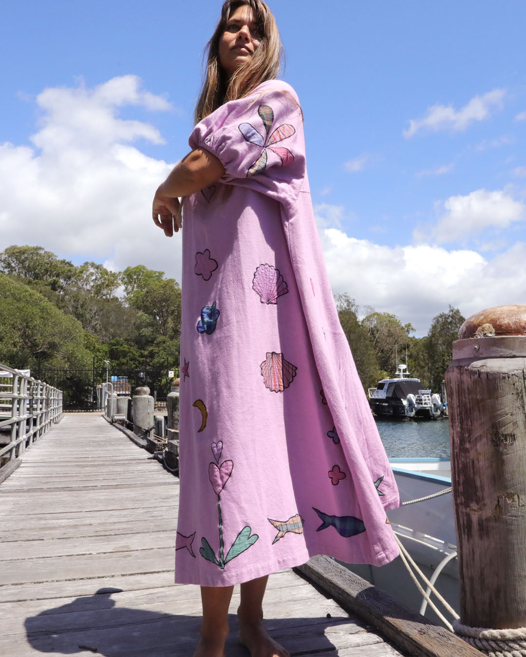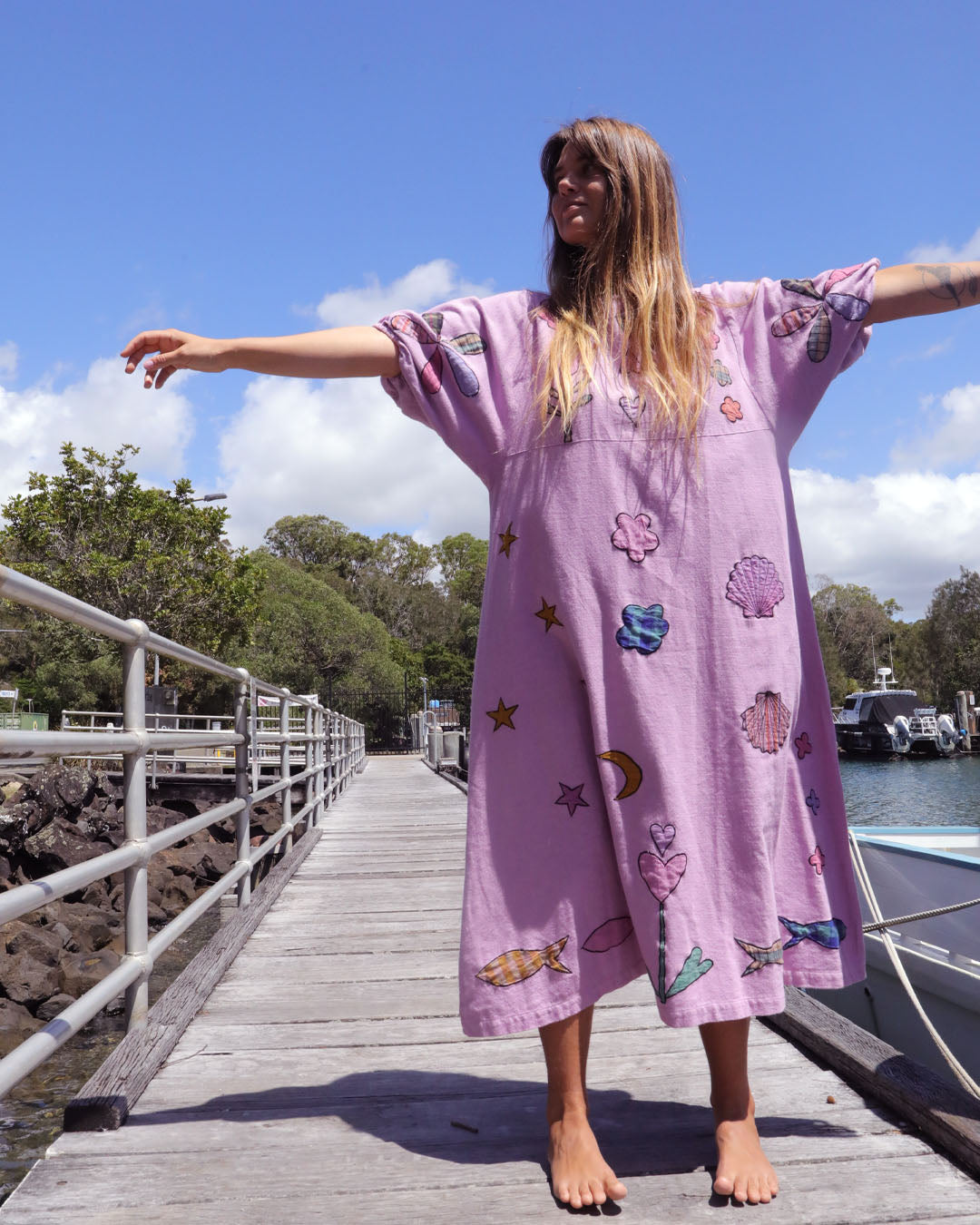 Sea Glass is an appliqué work of art. The dreamiest, mid-weight Indian cotton with underwater appliqués, all overdyed in orchid-fairy-floss pinky lilac.