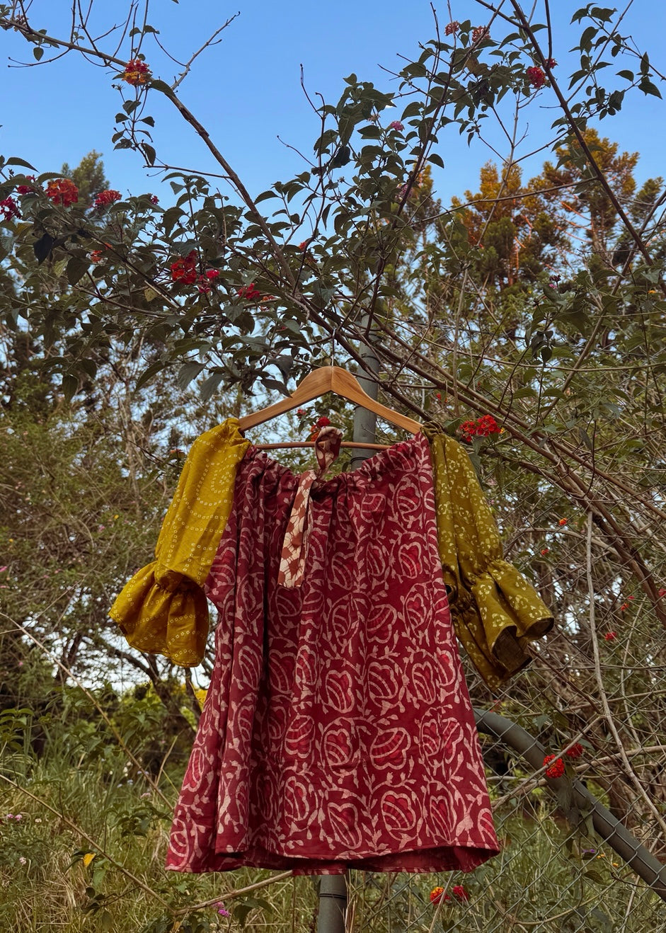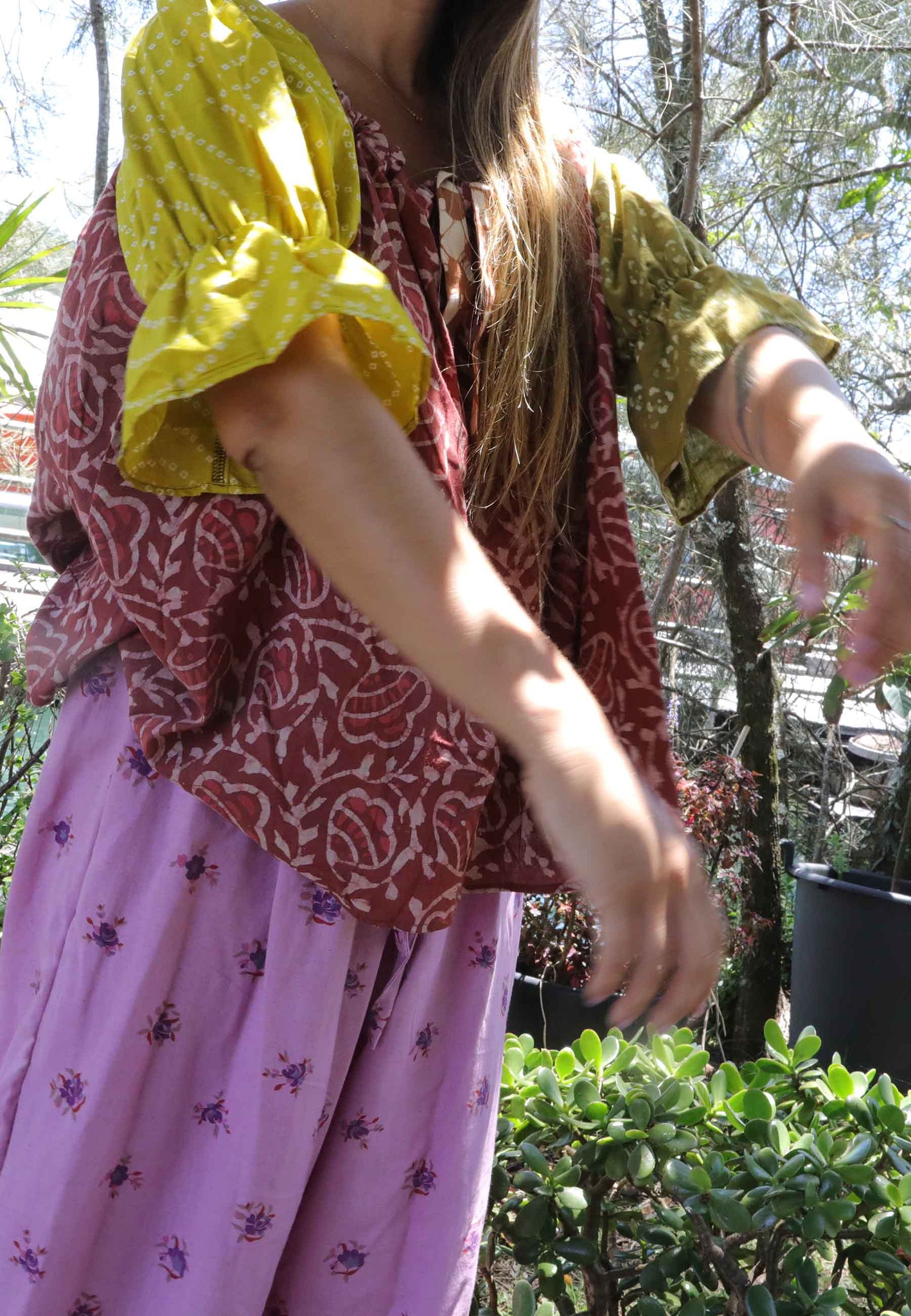 Fabulous Rosa Top in the most fabulous combination of spicey Indian handblock fabrics. Rosa is the blousey magic taken from my Mum's original drawstring neck tie, seventies dresses.