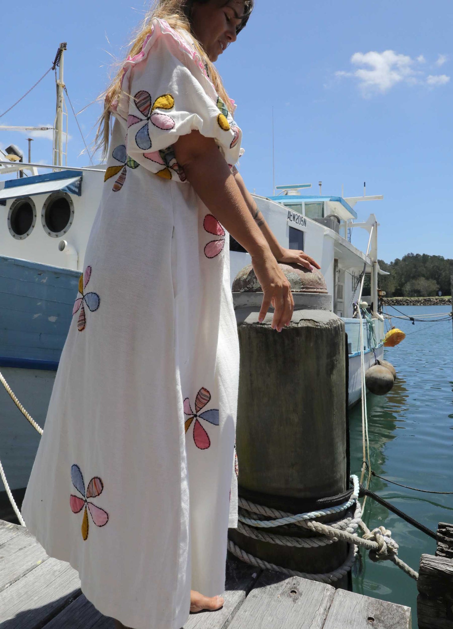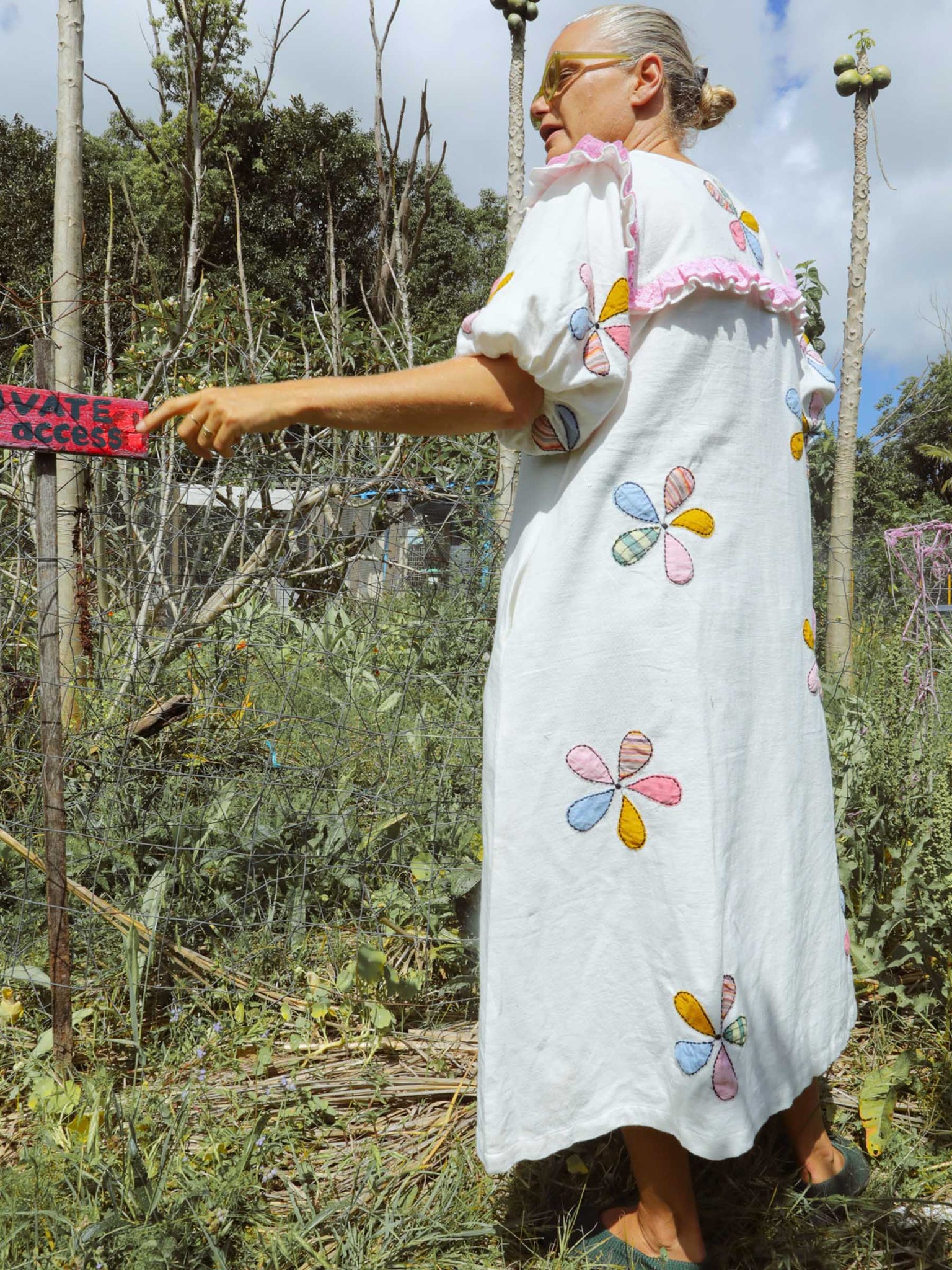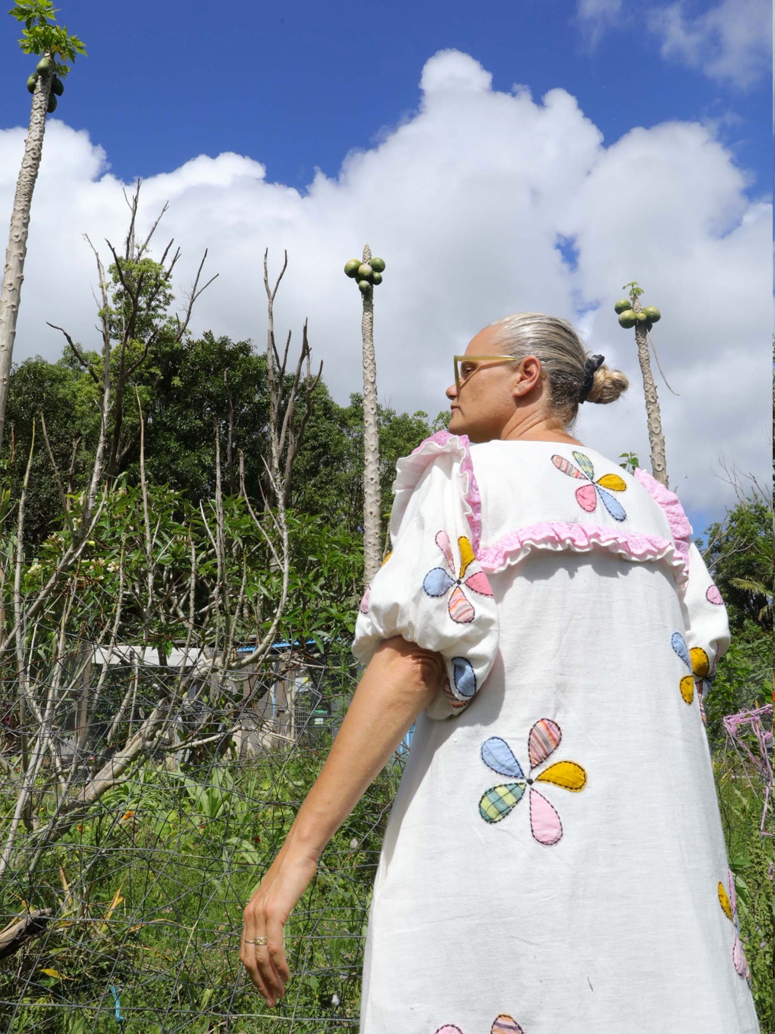 The Windmill Smock reminds me of my Aunty Jean’s garden, full of flowers and love and a noisy but majestic windmill. I created her in our dreamy, mid-weight Indian cotton with rainbow pinwheel appliqués to bring you some of the magic of that garden. Think dancing butterflies, buzzing bees, tumbling flowerbeds and the soft scent of freshly baked scones and the whistling of a pot of hot tea.